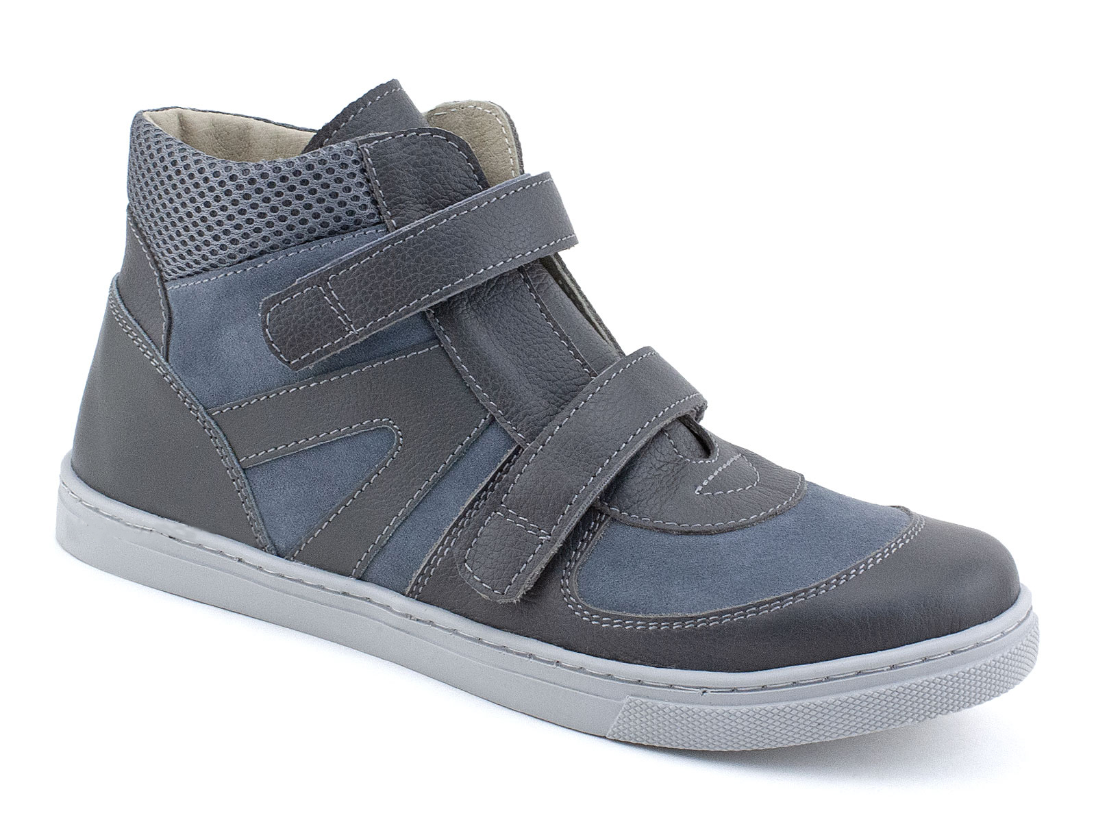 Ботинки на 2-х ремнях и застежкой «велькро» с жестким внутренним задником, продленным до пучков. Верх – кожа, кожподкладка.