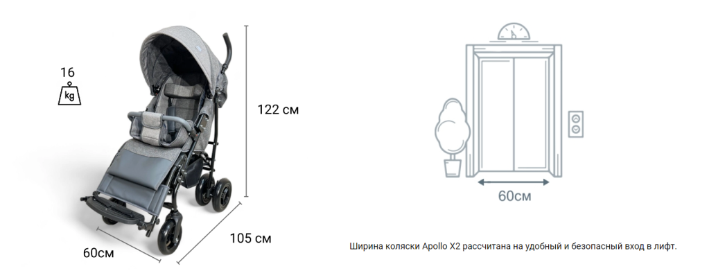 Imedix APOLLO X2 – специальная коляска, предназначенная для детей ростом до 135 см и максимальным весом до 35 кг. Компактная коляска сочетающая в себе надежную конструкцию и уникальные размеры в сложенном виде.